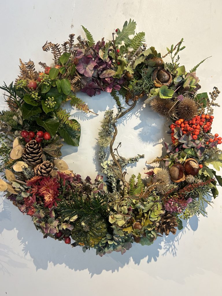 Using Enys grown and sustainably foraged Cornish materials, including flowers, foliage, berries, seed heads, mosses etc. you will create a beautiful piece to bring the warmth of autumn into your own home.