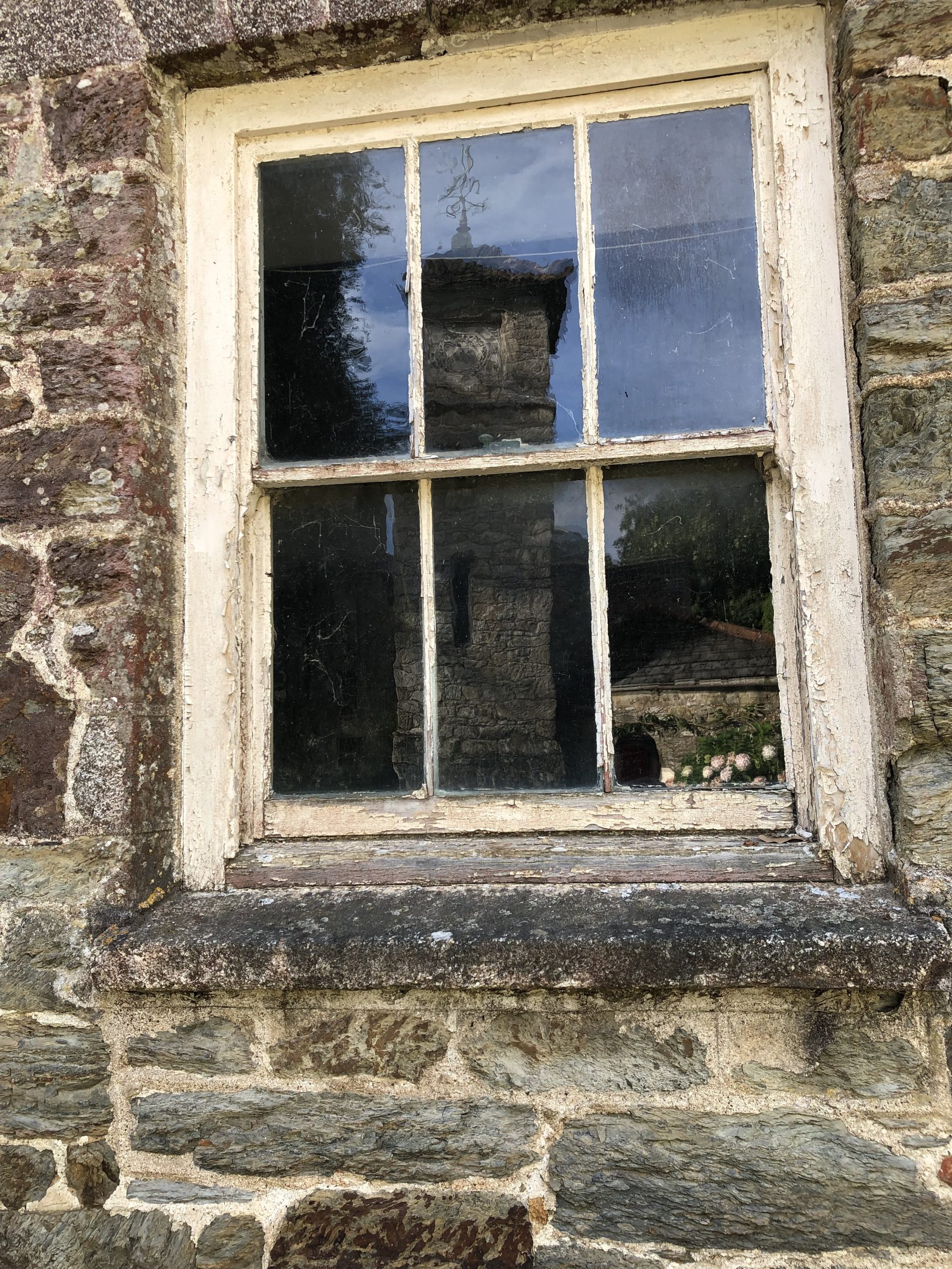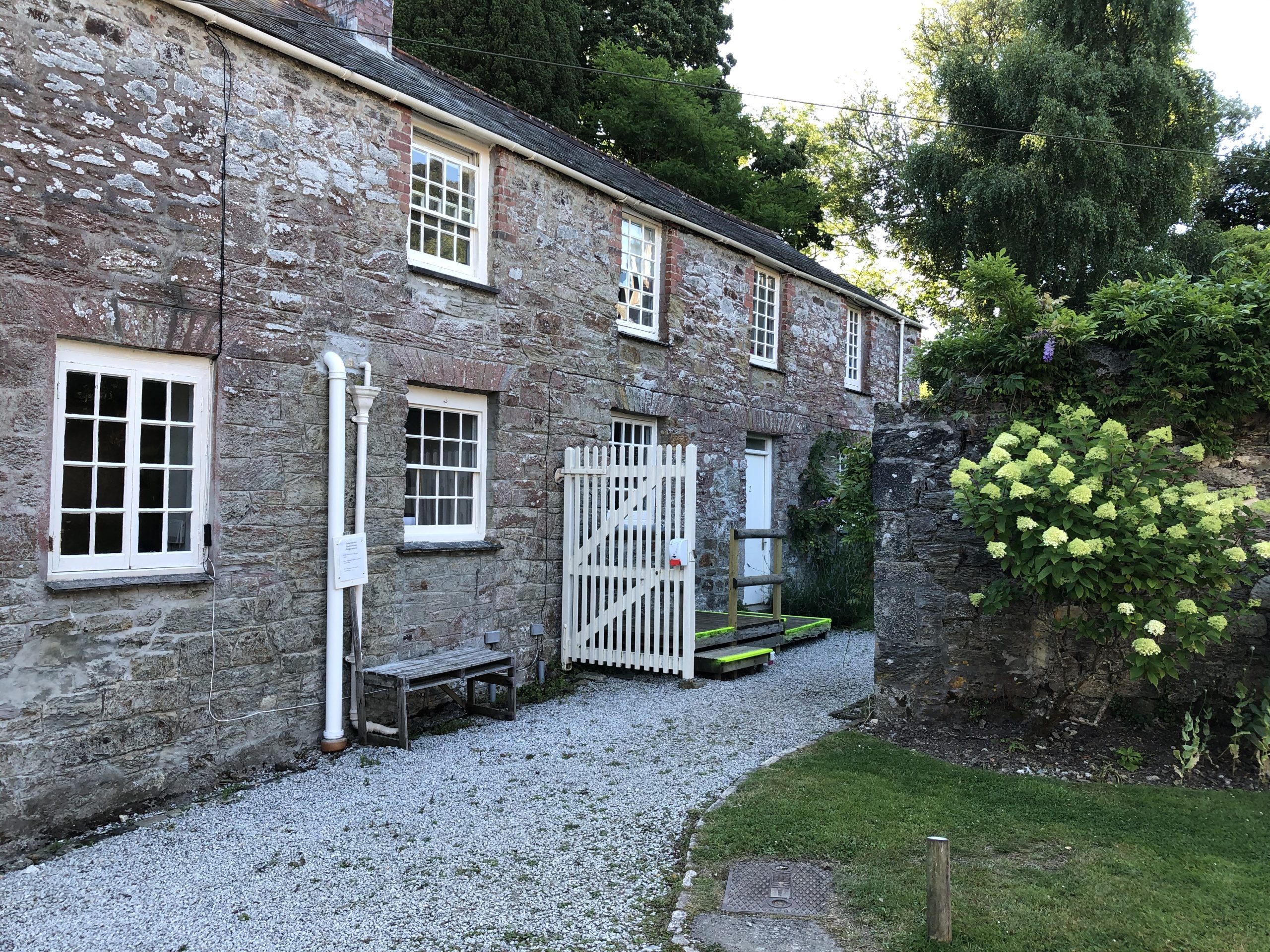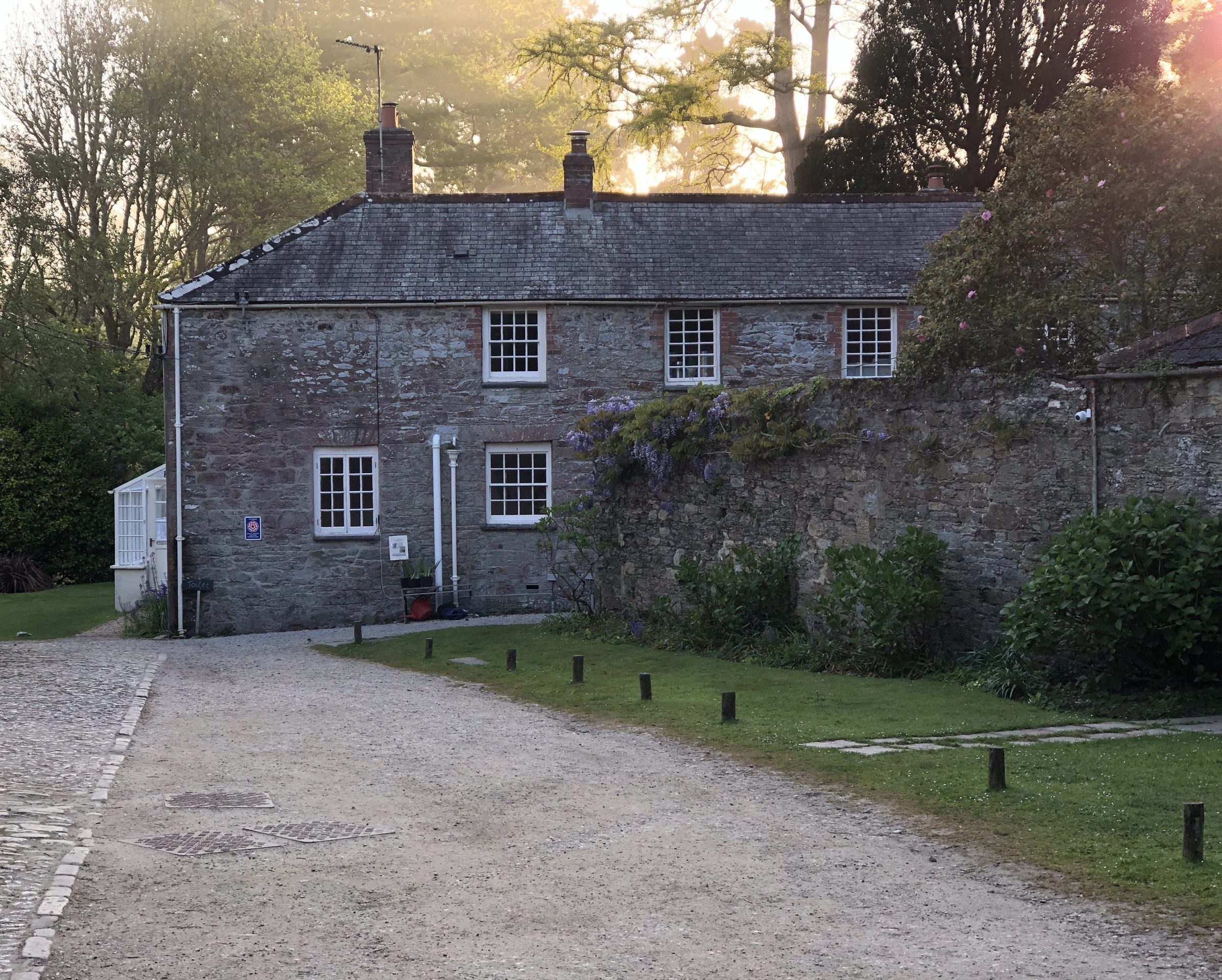 The buildings at Enys have changed little over time, and bear witness to the history of the place. The centrepiece is of course the Mansion House, a large house built in the 1830s to replace a fairly modest E-shaped Elizabethan manor house which burned down in the late 1820s. The granite used in its construction was quarried nearby on the Estate. Though the Mansion House is only open occasionally for events, a visitor can see much from the outside. As you walk round the outside, look for the dummy windows which were inserted to maintain a regular external appearance.