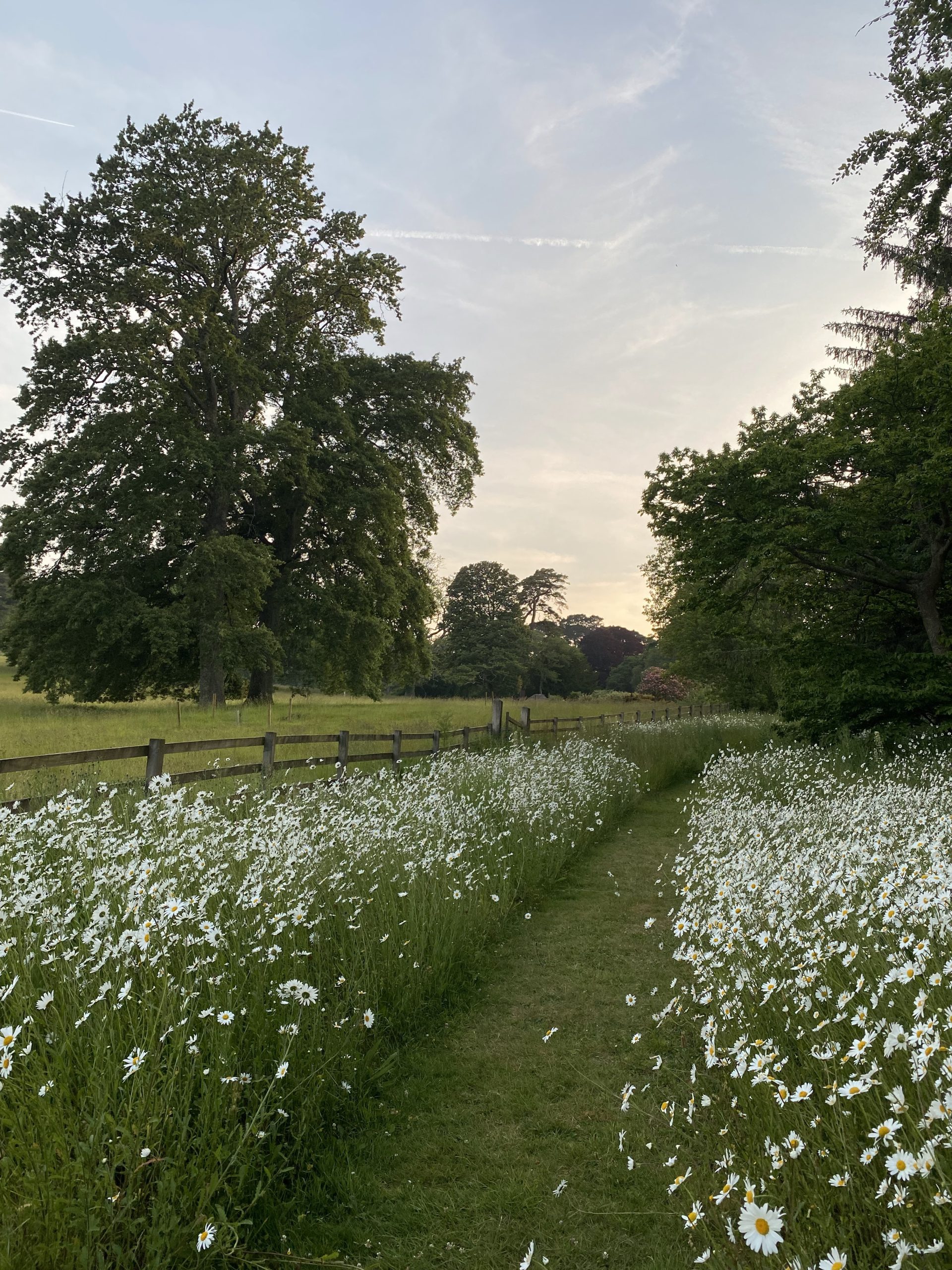 In summer, the Meadow Walk is a delightful stroll past swathes of Ox-eye daisies, with a sweeping view out over the Lawn Fields. In the Spring, you can find beautiful Snake’s-head fritillaries beside the path.